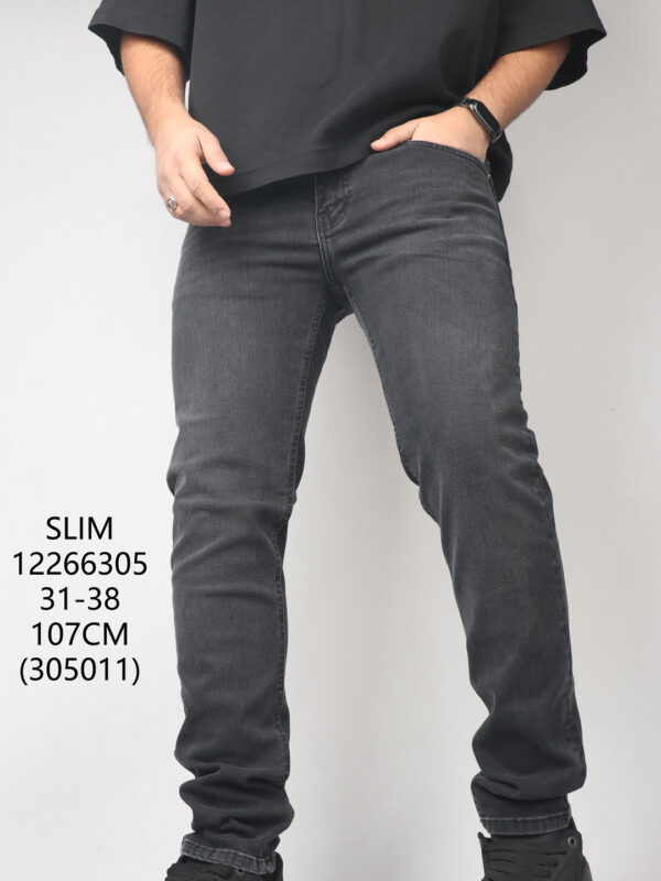 شلوار جین اسلیم ذغالی کم زاپ 12266305