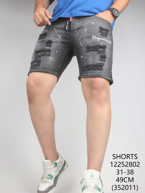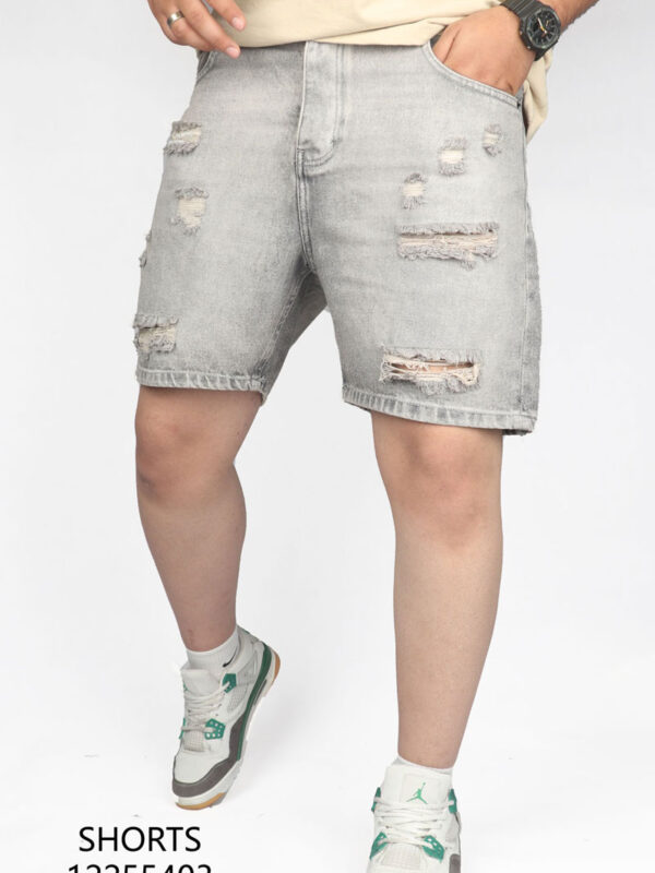 شلوارک جین طوسی رنگ پاش پر زاپ 12255404