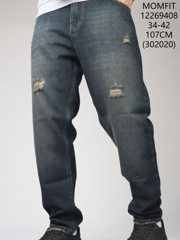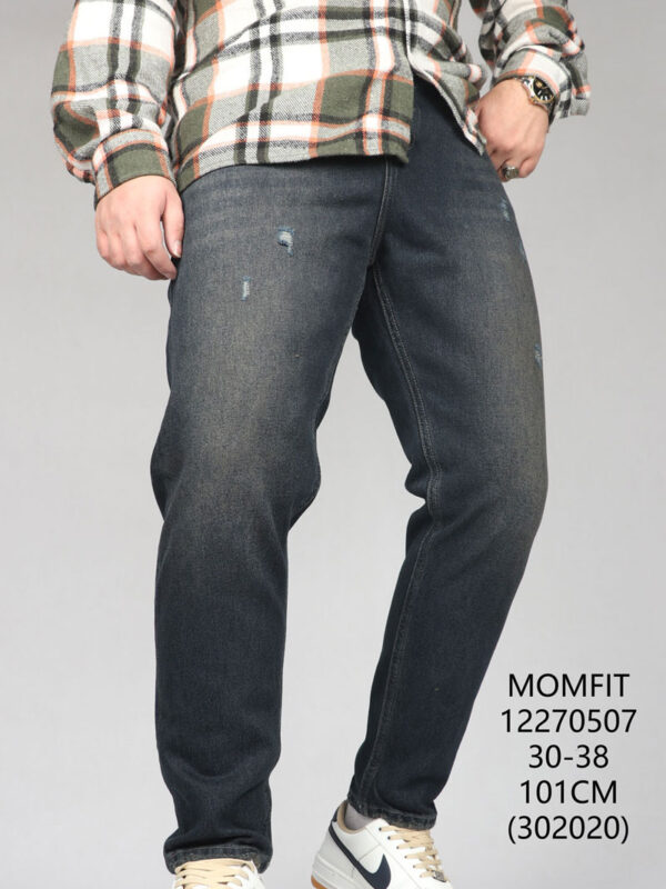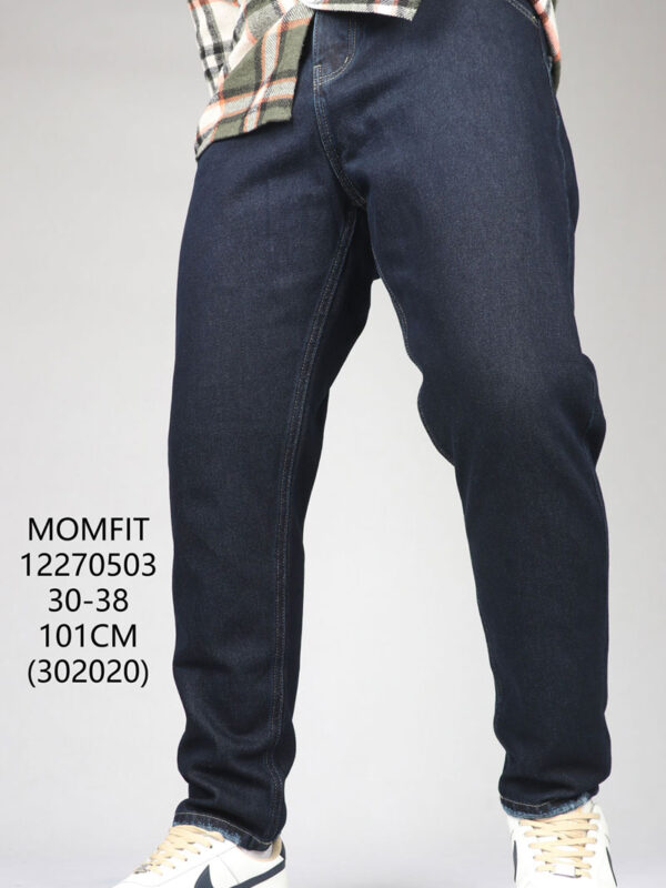 شلوار جین مام فیت آبی خام شور بدون زاپ 12270503