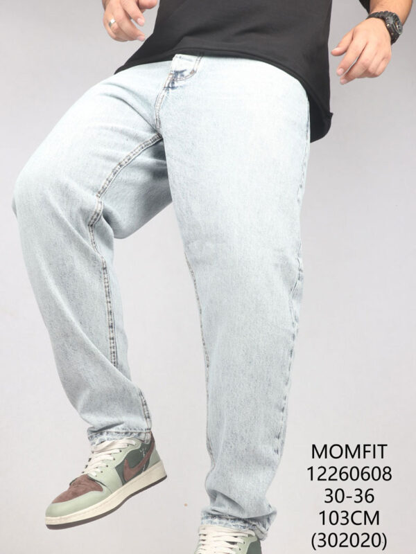 شلوار جین مام فیت آبی یخی بدون زاپ 12261210