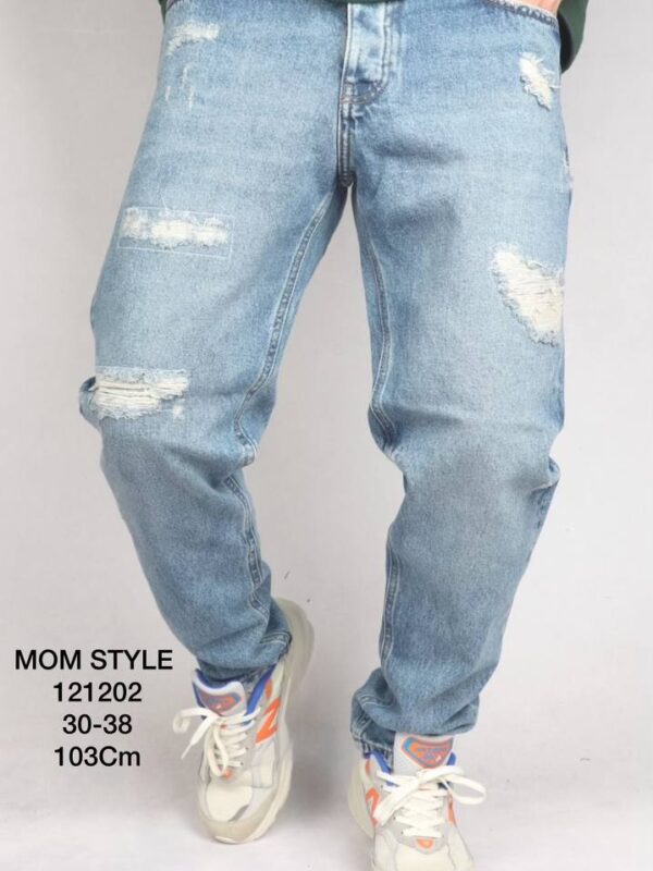 شلوار جین مام فیت آبی تینت پر زاپ 121202