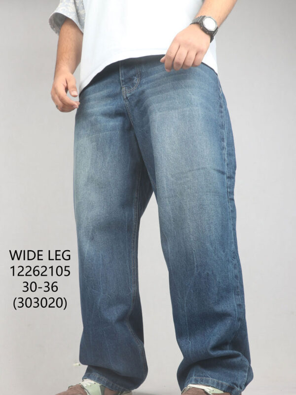 شلوار جین واید لگ آبی تیره کاستوم بدون زاپ 12260207