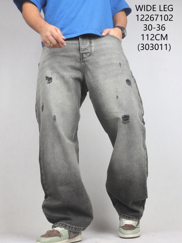 شلوار جین واید لگ ذغالی کاستوم ردو پر زاپ 12261707