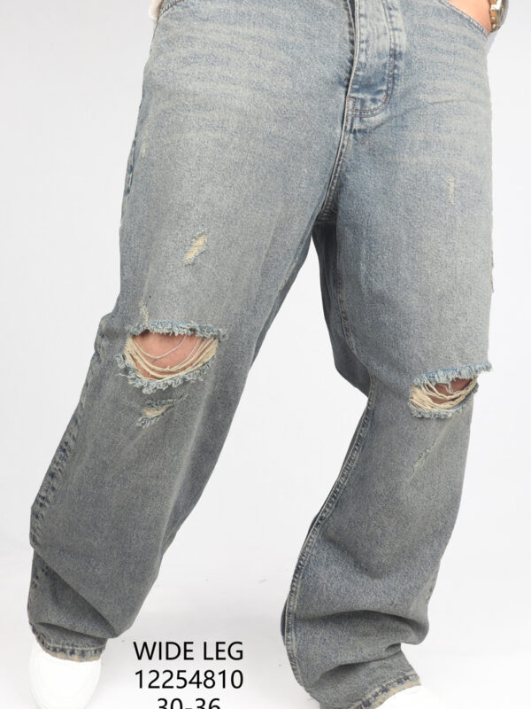 شلوار جین واید لگ طوسی زانو زاپ 12254304