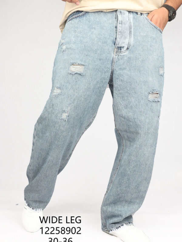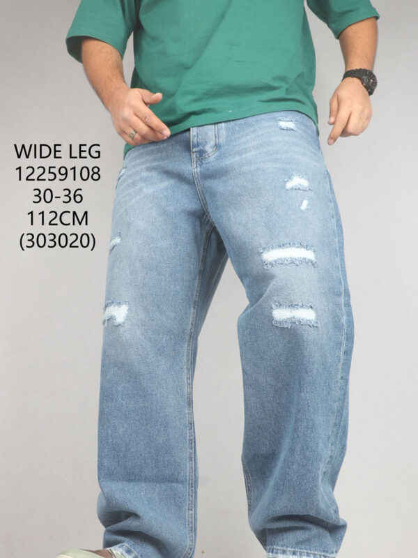 شلوار جین واید لگ آبی روشن زانو زاپ 12257803