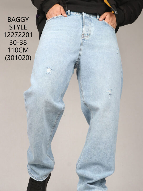 شلوار جین بگ استایل آبی بدون زاپ 12272204