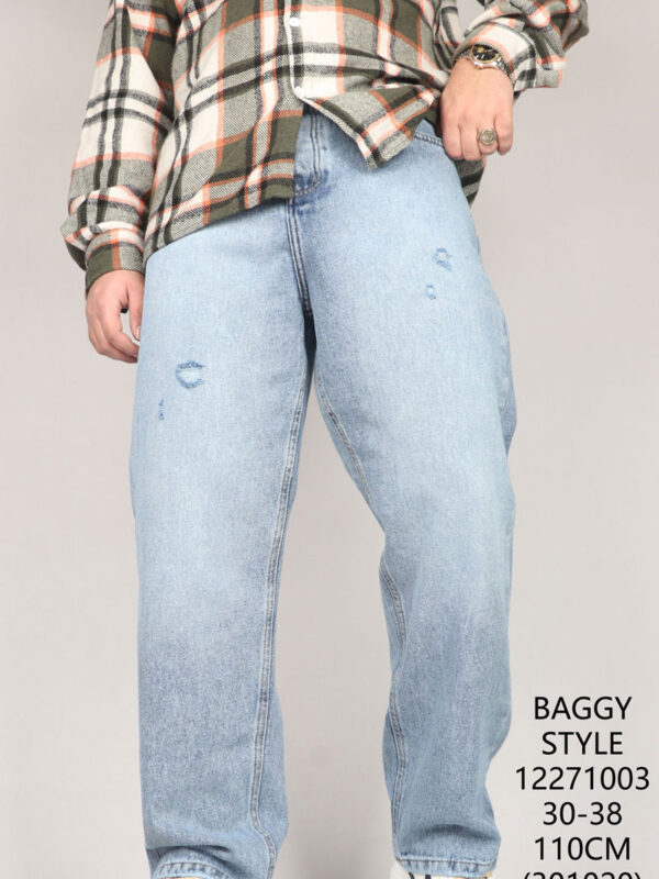 شلوار جین بگ استایل آبی پر زاپ 12271003