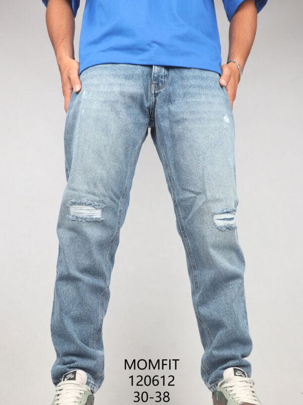 شلوار جین مام آبی زانو زاپ 120612