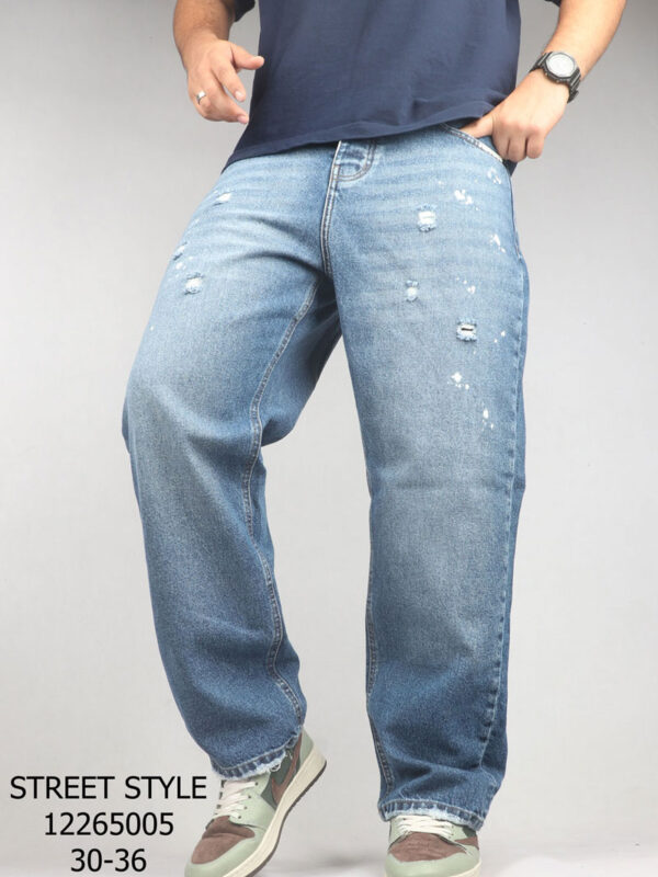 شلوار جین استریت استایل آبی کثیف شور رادو کم زاپ 12262808