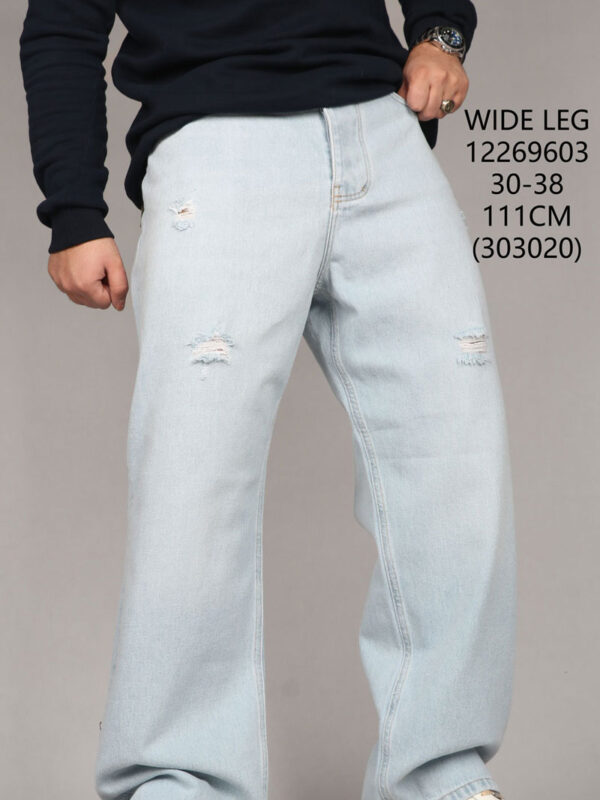 شلوار جین واید لگ آبی روشن پر زاپ 12269603