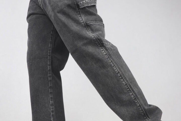 شلوار جین بگ استایل ذغالی رتدو بدون زاپ 12261901