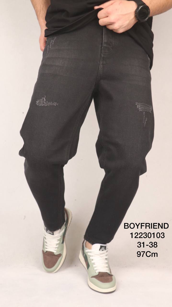 شلوار جین بوی فرند ذغالی کم زاپ 12230103