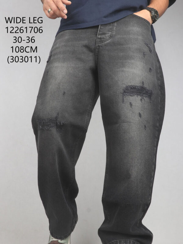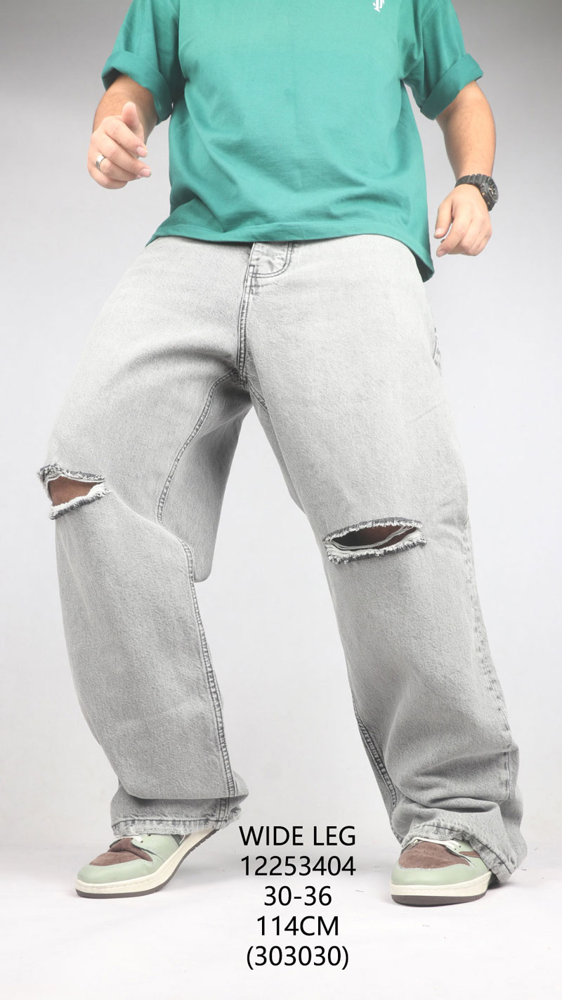 شلوار جین واید لگ طوسی زانو زاپ 12254304