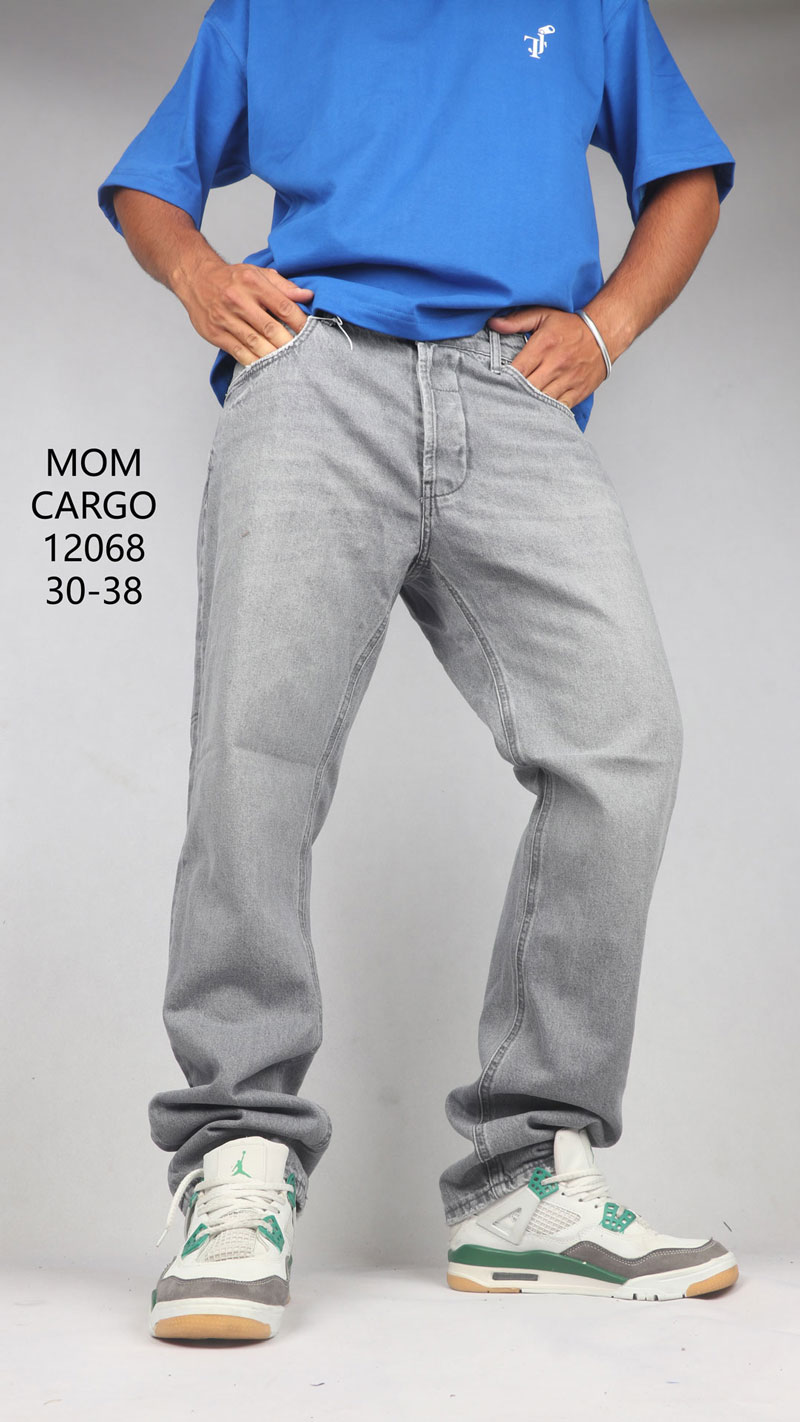 شلوار جین کارگو پنج جیب طوسی 12068