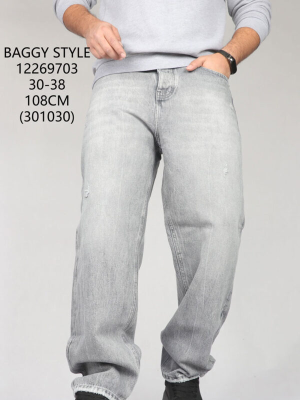 شلوار جین بگ استایل طوسی رادو کم زاپ 12269703