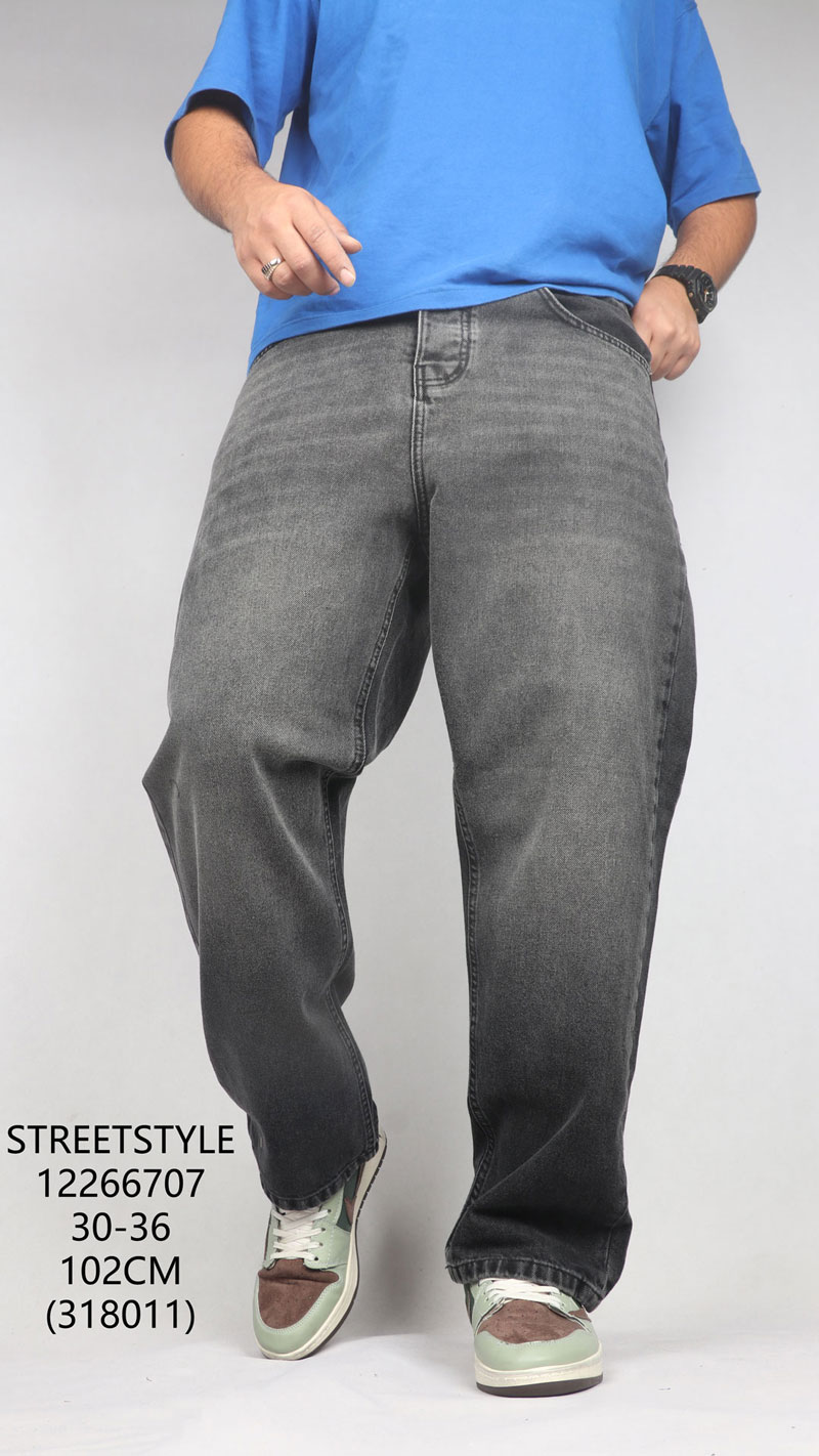 شلوار جین استریت استایل معمولاً از قسمت باسن تا مچ پا گشاد است. این گشادی و راحتی باعث می‌شود که فرد هنگام راه رفتن، نشستن یا حتی فعالیت‌های روزانه یا حتی فعالیت‌های ورزشی خیابانی مانند اسکیت، دوچرخه سواری یا اسکوتر احساس راحتی کامل داشته باشد.
