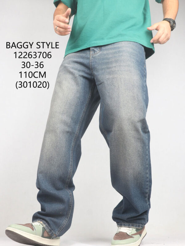 شلوار جین بگ استایل آبی تیره کثیف شور رادو بدون زاپ 12263706