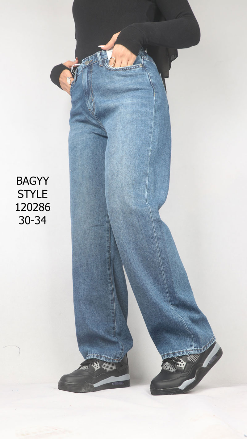 شلوار جین زنانه بگ استایل هالف کمرکش آبی 120286