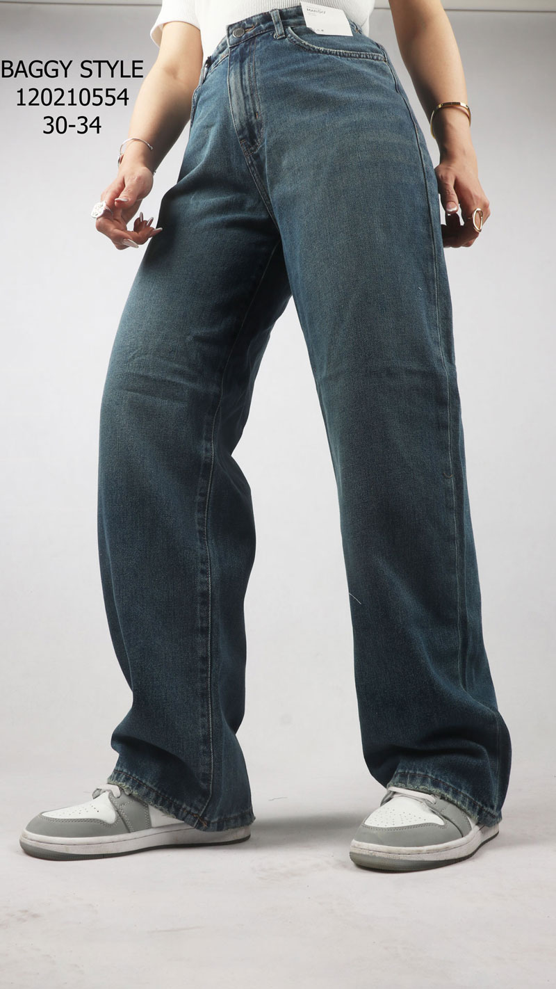 شلوار جین بگ استایل آبی کثیف شور بدون زاپ 14243405